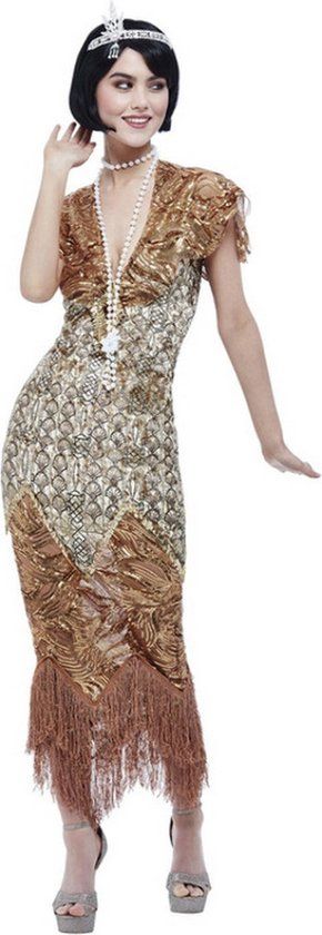 Bekijk productSmiffys Deluxe 20s Sequin Gold Flapper Costume - Gold - Size S - Kostuumsets