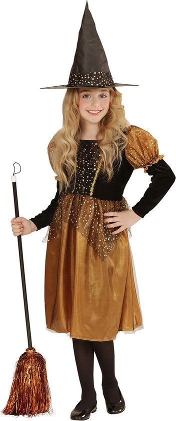 Widmann - Klassieke Kleine Heks Oranje Kostuum - Meisjes - Maat 158 - Halloween - Kostuumsets