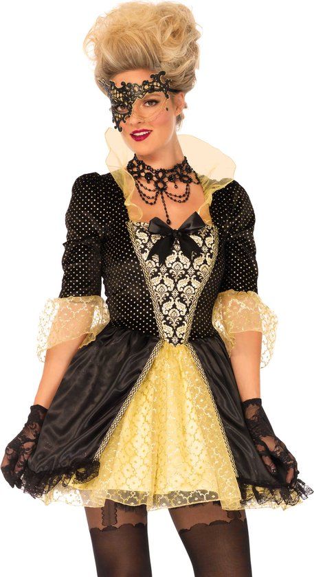 Fantasy Masquerade Jonkvrouw Verkleedkostuum - Zwart - Maat M