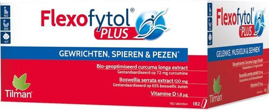 De exclusieve extract van kurkuma, Boswellia serrata-extract en vitamine Dgebruikt in Flexofytol PLUS, helpt u om de soepelheid van uw gewrichten, spieren en pezen terug te vinden1.