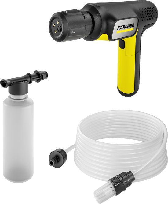 De OC Handheld Compacte middendrukreiniger met lithium-ion accu, inklapbare handgreep en aanzuigslang voor veelzijdige mobiele reiniging, onafhankelijk van stroom en wateraansluiting.