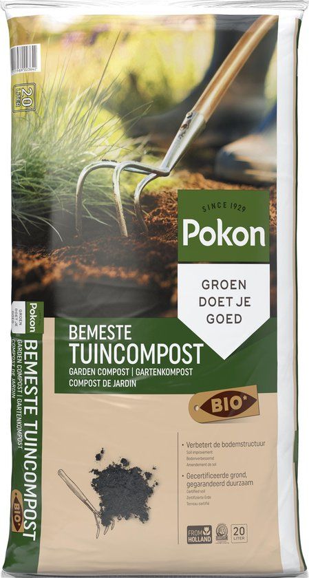 Pokon Bio Bemeste Tuincompost - 20l - Bodemverbeteraar - Geschikt voor ophoging en aanplanten - Kunstmest
