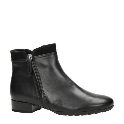 Deze enkellaars voor dames van Gabor uit de Nelson-collectie heeft een normale pasvorm en heeft een bovenwerk van leer. Het model is voorzien van een ritssluiting en een platte zool met een hoogte van 2,5 cm. De enkellaars heeft een voering van textiel en een vast voetbed.