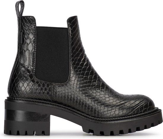Deze 'AMY' chelseaboots voor dames van POSH by Poelman hebben een bovenwerk van imitatieleer met anaconda print in de kleur zwart. Het model is voorzien van een elastieken inzet. De voering is van textiel en de laars heeft een vast voetbed. Deze stoere laarsjes hebben een vrouwelijke touch en passen helemaal in het modebeeld van nu. Super hip dus! Daarnaast zijn ze perfect te combineren met een lange jurk. rok of een stoere jeans!