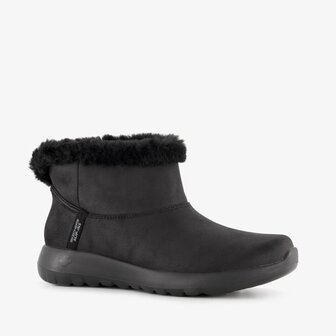 Zwarte Skechers Slip-Ins On The Go boots voor dames. Gemaakt van textiel, een binnenwerk van textiel en een rubberen zool. De boots hebben een eenvoudige instap, een Heel Pillow® die je voet stevig op zijn plaats houdt, een lichtgewicht, responsieve 5GEN® dempende tussenzool e een Skechers Air-Cooled Memory Foam® comfortabele binnenzool. Deze is uitneembaar. De boots van Skechers hebben een zachte, warme voering.