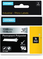 DYMO Rhino Permanent Polyester Labels - 12mm x 3.5m - Black on Metallic - Labeltape en reserverollen