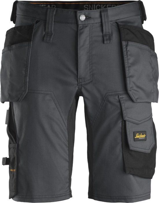 Snickers AllroundWork Stretch Werkshort 6141 - Mannen - Staalgrijs/Zwart - Maat 48 - Lange cargobroeken