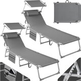 tectake Ligstoel Zonnebed - Aluminium - Donkergrijs - Verstelbaar - Met Kussen & Zonnedak