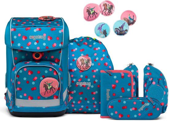 ergobag Cubo Light schooltassenset 6st incl. Klettie set - Blauw - Unisex - 19 l - Laptoprugzakken