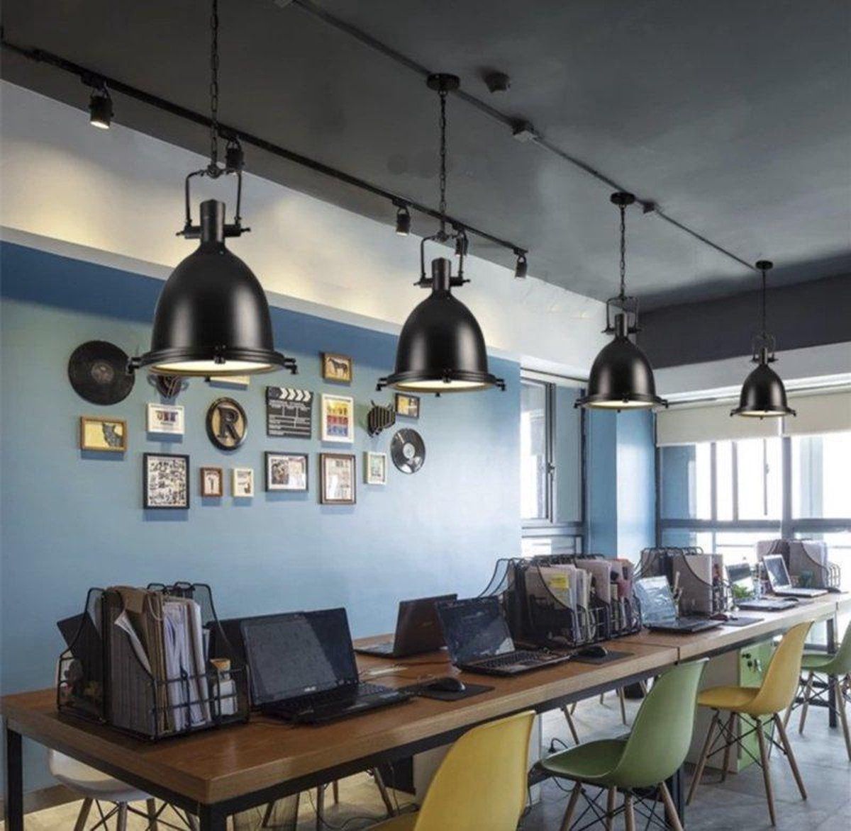 TensDesigns Lamp Hanglamp - Stoere Industriële retro lamp - Zwart - Metaal - Zwart - LED-verlichting