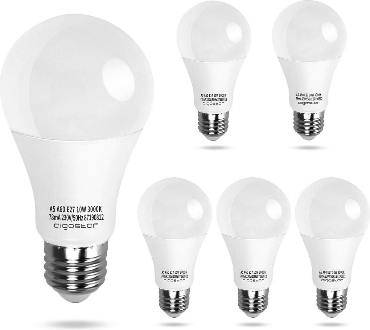Aigostar LED A5 A60B 10W - E27 - 3000K - Set van 5 - LED-verlichting