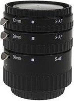 Foka Tussenringenset van 3 ringen van 13, 20 en 36mm voor Sony Alpha/Minolta Economy met kunststof vatting. Zeer geschikt voor macrofotografie.