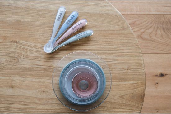 Béaba Set van 4 Siliconenlepels - 4+ maanden - Blauw/Groen/Grijs - Lepels