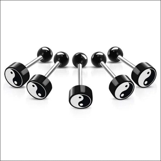 Ontdek de stoere en stijlvolle Stalen Tongpiercing Met Motief van Aramat Jewels! Deze zilverkleurige piercing is gemaakt van staal en acryl, wat niet alleen zorgt voor een modieuze uitstraling, maar ook veiliger is voor je tanden dan een volledig stalen piercing. Het bovenste balletje heeft een diameter van 8 mm, terwijl het onderste balletje een diameter van 6 mm heeft. Met een draaddikte van 1,6 mm en een staafje van 16 mm is deze piercing perfect voor diegenen die op zoek zijn naar een opvallend sieraad. Verkrijgbaar in stijlvolle zwart-witte kleurcombinaties, deze tongpiercing is een echte eyecatcher. Maar wees snel, want op=op!