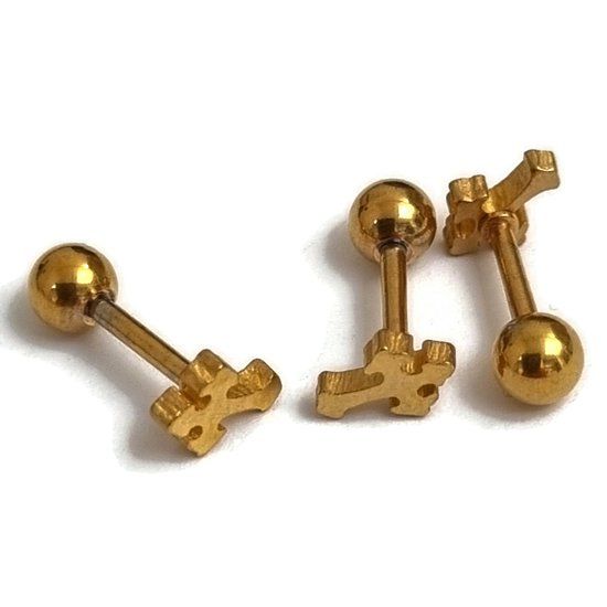 Helix Piercing Kruisje Chirurgisch Staal Goudkleurig - 1.2mm - Lichaamssieraden