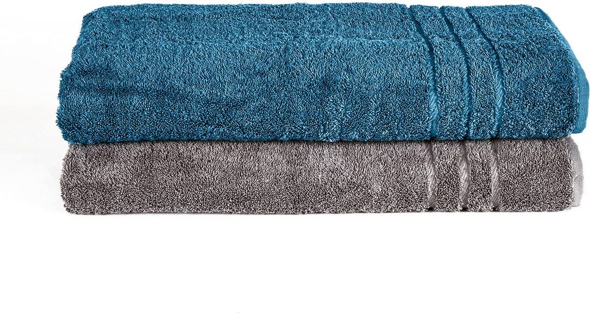 Komfortec Set van 2 Handdoeken 80x200 cm, 100% Katoen, XXL Saunahanddoeken, Antracietgrijs&Petroleumblauw - Handdoeken