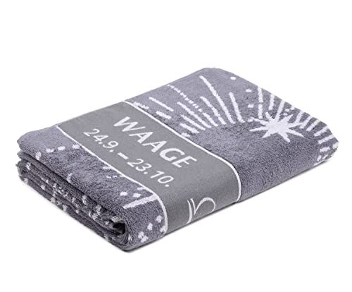 Gözze sauna handdoek met sterrenbeeld Weegschaal - 80 x 180 cm - antraciet/zilver