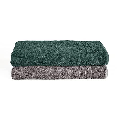 Komfortec 2 handdoeken voor sauna, 80 x 200 cm, antraciet/donkergroen - Handdoeken