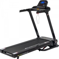 De Duke Fitness T40 is een compacte en gebruiksvriendelijke loopband die afgestemd is op de eerste stappen in looptraining. De T40 heeft een zwarte kleur en het loopvlak van 42 cm breed en 125 cm lang biedt een praktisch en comfortabel renoppervlak. De loopband kan een maximumgewicht van 100 kg dragen. Met een minimale snelheid van 1 km/u tot een maximale snelheid van 16 km/u, is deze loopband geschikt voor zowel wandelaars als beginnende hardlopers. De elektronische hellingshoekinstelling, met een bereik tot 10 procent, biedt de mogelijkheid om de training intensiever en diverser te maken. De T40 is uitgerust met leuningen voor extra veiligheid, maar heeft ook een noodstop-optie. Met de inbegrepen handgripsensoren kunt u gemakkelijk uw hartslag volgen tijdens uw training. Daarnaast kunnen de gebruikers hun lichaamsvet analyseren, een handige functie voor degenen die hun lichaamssamenstelling willen bijhouden en verbeteren. De loopband heeft drie gebruikersprogramma's en kan verticaal worden opgeslagen, wat perfect is voor wie ruimte wil besparen. De loopband is ook uitgerust met transportwielen, wat het manoeuvreren en verplaatsen van de loopband vergemakkelijkt. Bovendien biedt de T40 plaats voor uw drinkfles, heeft het een ingebouwde leeshouder en een houder voor mobiele apparaten. De T40 brengt functie en comfort samen in een in hoogte opvouwbare loopband.