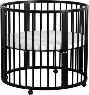 De box wordt geleverd met een comfortabel matras, zodat uw kind direct kan liggen of spelen. De zwarte kleur en ronde vorm maken het een stijlvolle toevoeging aan elke ruimte en passen perfect bij moderne interieurstijlen.