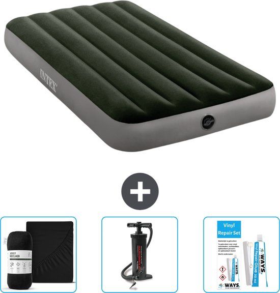 Intex Luchtbed - 1-Persoons - 99 x 191 x 25 cm - Groen - Inclusief Hoeslaken - Pomp en Reparatieset - Luchtbedden als meubels