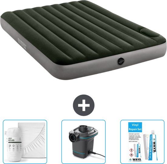 Intex Luchtbed - 2-Persoons - 152 x 203 x 25 cm - Groen - Met Pomp en Reparatieset - Luchtbedden als meubels