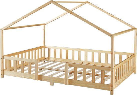 Dit stevige houten bed met uitvalbeveiliging en bedbodem is een favoriet van kinderen.