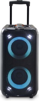 De Nedis draagbare Bluetooth party trolley speaker is ontworpen voor diegenen die graag het feest overal mee naartoe nemen. Deze speaker zit boordevol functies die garant staan voor een onvergetelijke ervaring. Door de intrekbare handgreep en wielen maar ook de makkelijk te pakken handgreep aan de bovenkant zorgen voor een maximale draagbaarheid, waardoor je het feest overal mee naartoe kunt nemen. Maak je klaar om de nacht te verlichten met schakelbare leuke ringverlichting en een betoverend stroboscoopeffect dat danst op het ritme van je muziek, waardoor een sfeer ontstaat die perfect bij je feestvibe past. Maar je kunt het natuurlijk ook gebruiken bij je wekelijkse sporten voor de warming-up. Maar het gaat niet alleen om de beelden - de Nedis Party Trolley Speaker levert krachtig geluid met zijn 2 x 5,25"subwoofer en 2 x 2"tweeter combinatie. Voel de muziek tot leven komen terwijl de diepe, volle bas door de lucht resoneert, dankzij de MEGA BASS-functie. Pas uw geluid met