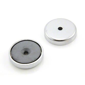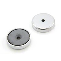 40mm diameter x 8mm dik met een 5mm diameter verzonken gat voor bevestiging Elke magneet is alleen magnetisch op het verzonken gezicht Elke magneet kan 15 kg verticaal uit het magnetische vlak trekken wanneer hij in contact komt met een mild stalen oppervlak van gelijke dikte Verchroomd stalen omhulsel Kan op zijn plaats worden bevestigd met verzonken schroeven met een diameter van 5 mm