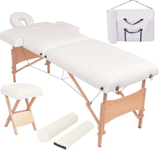 tectake® - 2 zones massagetafel - set met 5cm matras, rolkussens en houten frame - incl. draagtas - beige - behandeltafel – behandelbank – incl. opbergtas – opvouwbaar