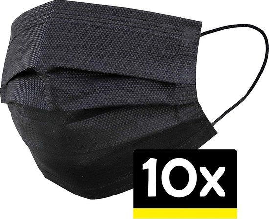 Zwart Wegwerp Mondkapjes - 10 Stuks - Medische gezichtsmaskers