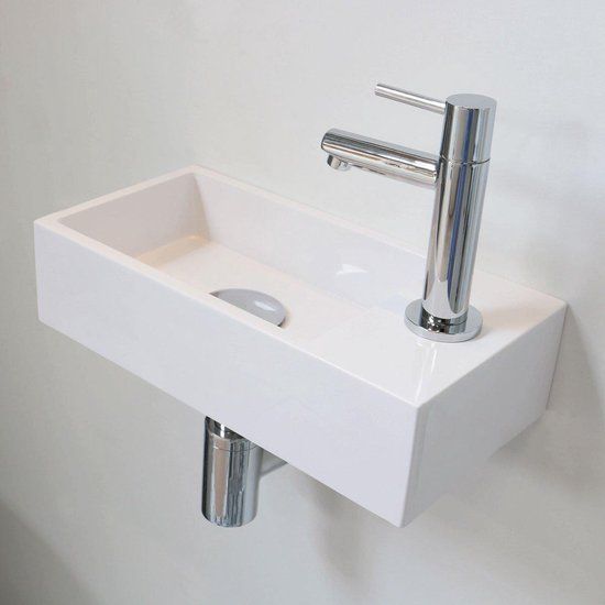 INK Versus fontein Polystone rechts met kraangat 9x36x18cm Glans wit