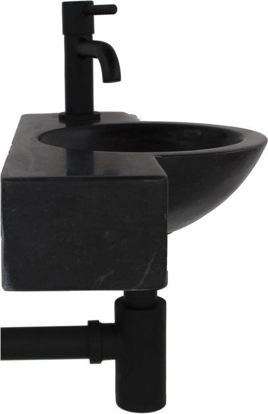 L'Aqua Fonteinset Fynn - Hardsteen - Mat Zwart - 40x23x8cm - Met Kraan & Sifon - Mengkranen voor gootstenen voor badkamers