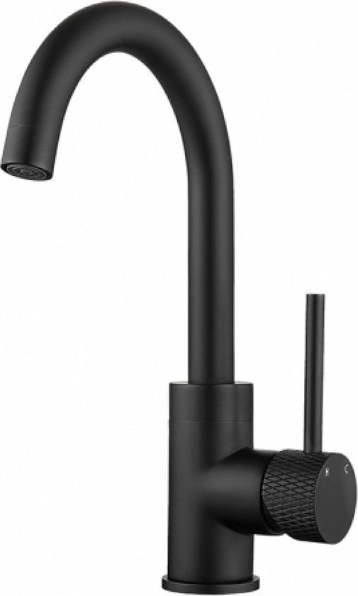 Wiesbaden Ribbd wastafelmengkraan mat zwart 29cm draaibare uitloop - Mengkranen voor gootstenen voor badkamers