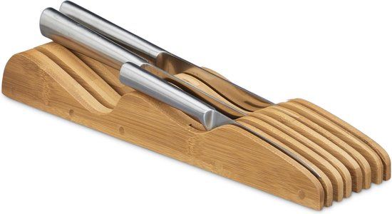 Relaxdays Messenblok Lade - Bamboe - Messenhouder - 11 Messen - Lichtbruin - Messenblokken