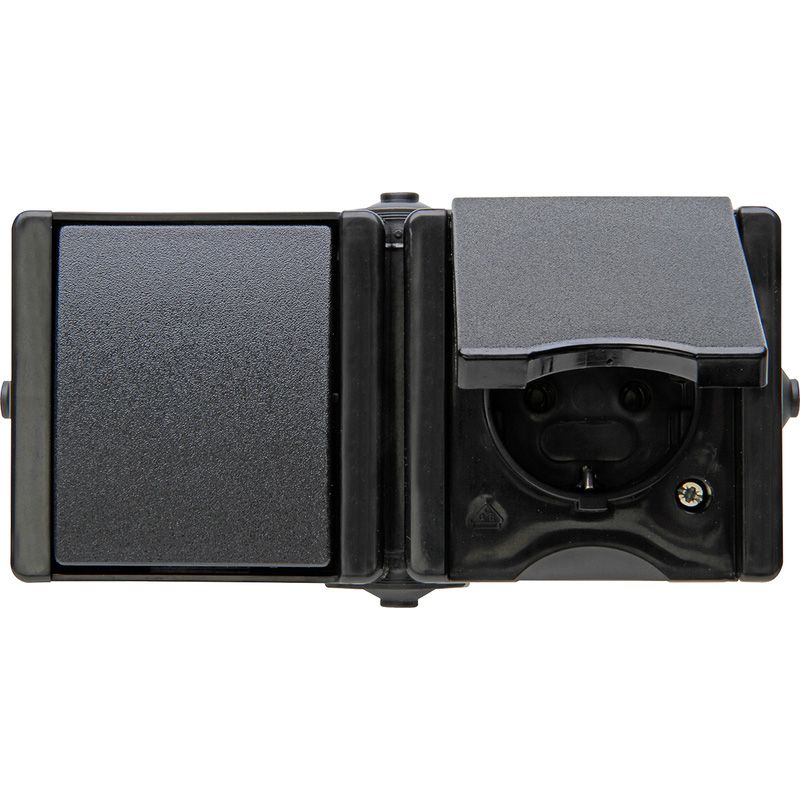 Kopp ProAQA Combination Socket/Switch RA Surface Mount Splashproof Black IP44 Horizontal - Modular switches