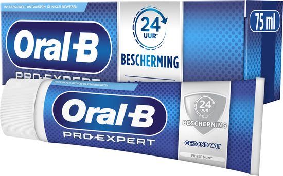 Oral-B Pro-Expert Gezond Wit tandpasta is klinisch bewezen en professioneel ontworpen in samenwerking met tandartsen. Maakt de tanden witter door oppervlakkige verkleuringen te verwijderen en beschermt 24 uur tegen tandplak bij twee keer per dag poetsen.