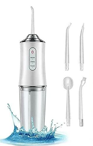 GENERAL TRADERS Draagbaar tandwater, oplaadbaar, mondeloze sproeier, 3 reinigingsmodi, 4 sproeiers met 360 graden rotatie, USB-oplaadbaar, IPX7 waterdicht, levensduur van de batterij 15 dagen - Tandenborstels
