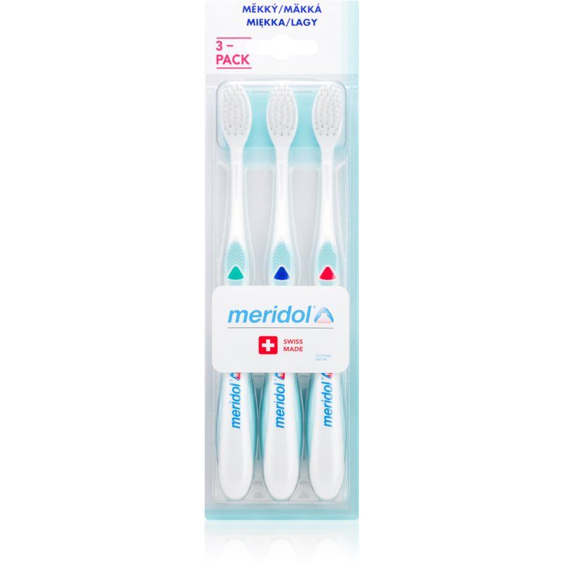 Meridol Gum Protection Soft, 3 st, Tandenborstels voor Mannen, De tandenborstel Meridol Gum Protection Soft behoudt de gezondheid en schoonheid van je tanden. Verwijdert effectief tandplak en helpt tandbederf te voorkomen. Kenmerken: gemakkelijk mee te manipuleren biedt zachte tandvlees- en tandglazuurverzorging Hoe te gebruiken: Breng tandpasta aan op de borstel, bevochtig, maak je tanden en mondholte schoon. Grondig spoelen.
