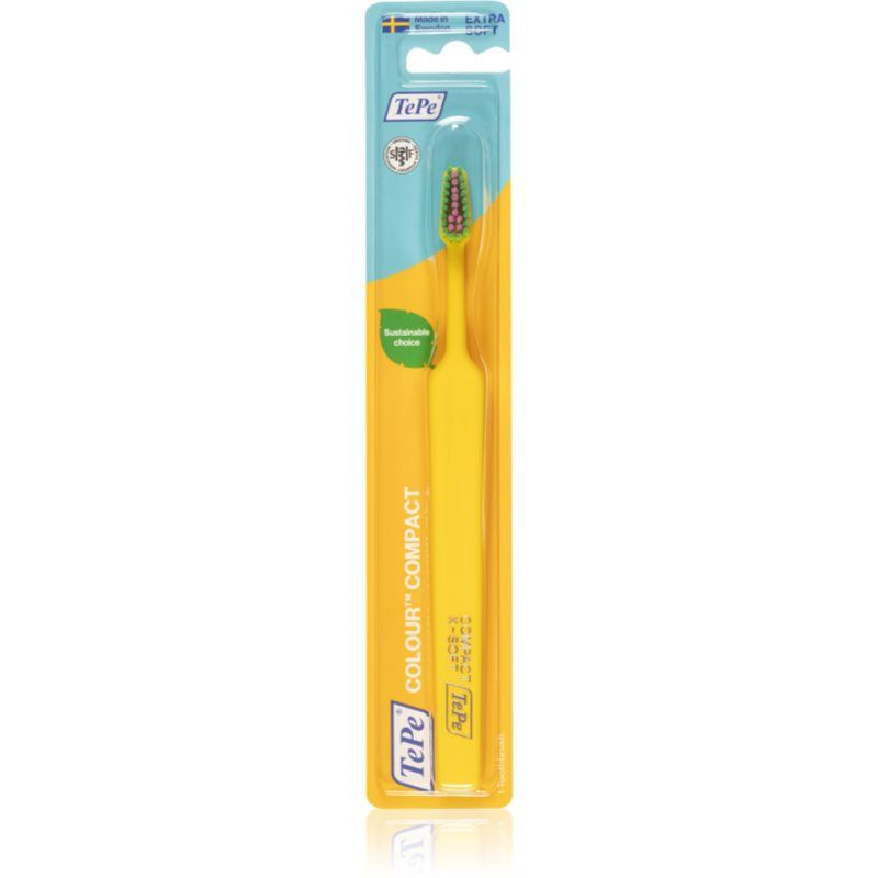 TePe Colour Compact X-Soft, 1 st, Borsteltjes Unisex, De tandenborstel TePe Colour Compact X-Soft behoudt de gezondheid en schoonheid van je tanden. Verwijdert effectief tandplak en helpt tandbederf te voorkomen. Kenmerken: verwijdert tandplak polijst het oppervlak van de tanden gemakkelijk mee te manipuleren biedt zachte tandvlees- en tandglazuurverzorging komt ook op moeilijk bereikbare plaatsen Hoe te gebruiken: Breng tandpasta aan op de borstel, bevochtig, maak je tanden en mondholte schoon. Grondig spoelen.