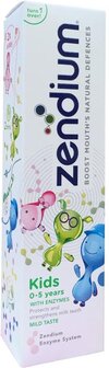 Zendium Kids 0-5 jaar helpt het melkgebit te beschermen. Zendium is een milde tandpasta die de natuurliijke weerstand van je mond versterkt! Het bevat namelijk het wetenschappelijk bewezen Zendium Enzyme System, met enzymen die je mond van nature gebruikt om bacteriën en tandplak tegen te gaan. Zendium Kids 0-5 jaar probeert kinderen spelenderwijs twee keer per dag te laten poetsen, met de bijgevoegde poetskaart.