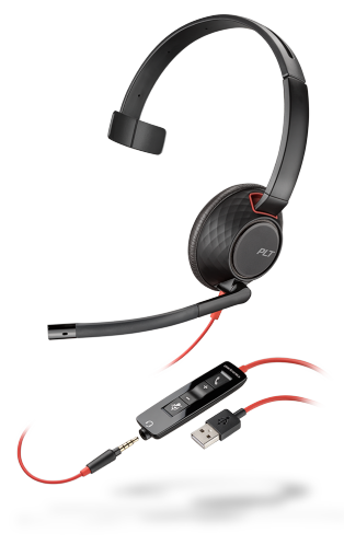 The Blackwire 5200 Series fits your busy workday. Easy to use, USB/ USB-C and 3 .5 mm connectivity options let you work on a variety of devices. And it's so comfortable, you'll be able to wear it all day.\n\nAll-day comfort and universal connectivity\nWhen you need to wear a headset all day, the Blackwire 5200 Series has you covered in the utmost of comfort. Ergonomically designed, it's comfortable enough to wear all day, on your longest calls. To make it easier for you to work anywhere in the office, it also gives you the freedom to plug into the compatible device of your choice: All models are available with 3.5 mm connectivity and you can choose USB or USB-C.\n\nOutstanding audio quality for better productivity\nToday’s workplace can be noisy and filled with distractions. With the Blackwire 5200 Series, you’ll be able to hear and be heard more clearly, enjoy conversation privacy and be more productive. That’s because soft, conforming ear cushions provide passive noise canceling, while a precisely tuned microphone masks nearby conversations.\n\nA headset that works the way you do\nAdjust the headset to fit the way you work. Dedicated, customizable mute settings allow you to take calls confidently, ensuring you’re always heard. Set the language for voice alerts, and you’re in even greater control of your conversation.\n\n- Ideal for all-day use, long conference calls and listening to multimedia\n- Noise canceling microphone masks nearby talkers for maximum call privacy\n- Available in monaural (Blackwire 5210) or hi-fi stereo with passive noise reduction (Blackwire 5220)\n- Variants include universal USB or USB-C\n- Connectivity to smartphone and tablet via 3.5 mm\n- One-touch call answer/end, volume +/- and mute\n- PC wideband audio with noise-canceling microphones for high-quality PC telephony\n- Plantronics Manager Pro, an additional purchase, enables your IT team to gain insight into every\n- compatible Plantronics headset being used company-wide