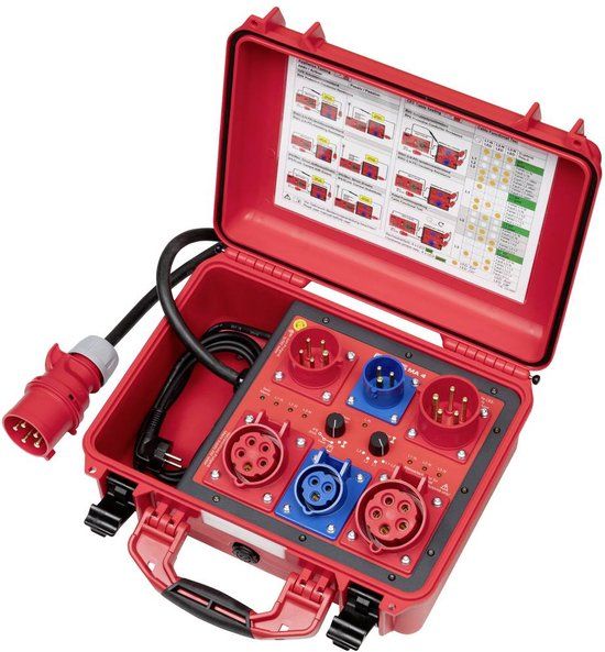 Adapterkoffer voor de actieve en passieve controle van 1- en 3-fasige CEE-bedrijfsmaterialen en CEE-verlengsnoeren in combinatie met apparaattesters. De meetadapter vergemakkelijkt het werk bij de controle van mobiele apparaten. Door de robuuste uitvoering is hij bijzonder geschikt voor gebruik in industriële omgevingen. De eenvoudige bediening maakt het voor de gebruiker mogelijk om op een logische en snelle manier met de meetadapter te werken. U kunt apparaten en verlengkabels controleren met de volgende connectoren conform IEC 60309-1. CEE-stekkers: 16 A, 50 Hz - 60 Hz, 230 V, L+N+PE, 6 h 16 A, 50 Hz - 60 Hz, 380 V - 415 V, 3L+N+PE, 6 h 32 A, 50 Hz - 60 Hz, 380 V - 415 V, 3L+N+PE, 6 h Sluit hiervoor de meetadapter aan op een apparaattester voor het testen van mobiele apparaten conform DIN VDE 0701-0702 respectievelijk DIN EN 62353 (VDE 0751-1) of DIN En 60974-4 (VDE 0544-4). De apparaattester moet over een geaard stopcontact beschikken om het aansluiten van de meetadapter mogelijk te maken. Afhankelijk van het type test moet eventueel ook een CEE 16A- of 32A-stopcontact beschikbaar zijn. Voor de CEE 16 A is een adapterkabel nodig. De meetadapter is geschikt voor aansluiting op de apparaattester: Benning ST 725 Benning ST 750/750A/755/760 Externe apparatuur
