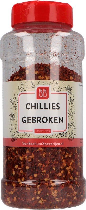 Chillies gebroken, ofwel chiliflakes zijn een musthave voor iedereen die van pittig eten houdt. De meeste 'hitte' zit in de zaadlijsten. Bij gedroogde chilivlokken is de hele chilipeper gemalen, inclusief de zaadlijsten. Je kunt met dit geweldige specerij uit de voeten tijdens het bakken, grillen en stoven.