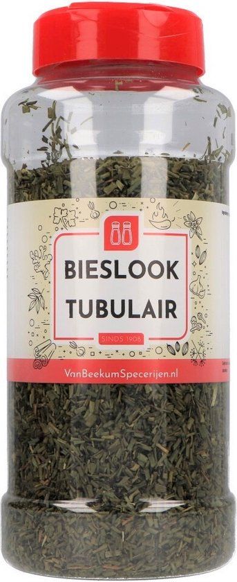 Bieslook is een enorm smaakvolle kruid. Het vormt een sterke basis voor tal van gerechten of kruidenmixen. Tubulair betekent buisvormig. Onze gedroogde bieslook is niet helemaal fijngesneden, de buisvormige vorm is behouden.
