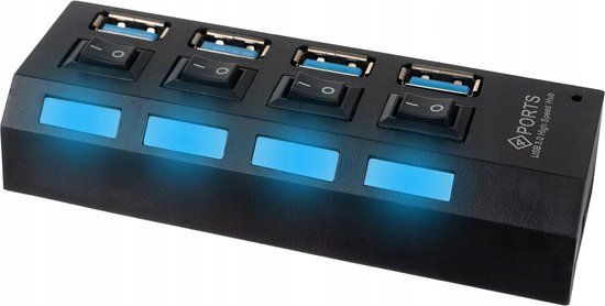 USB Hub - 4 Ports 3.0 - Black - BES LED - Naafkegels