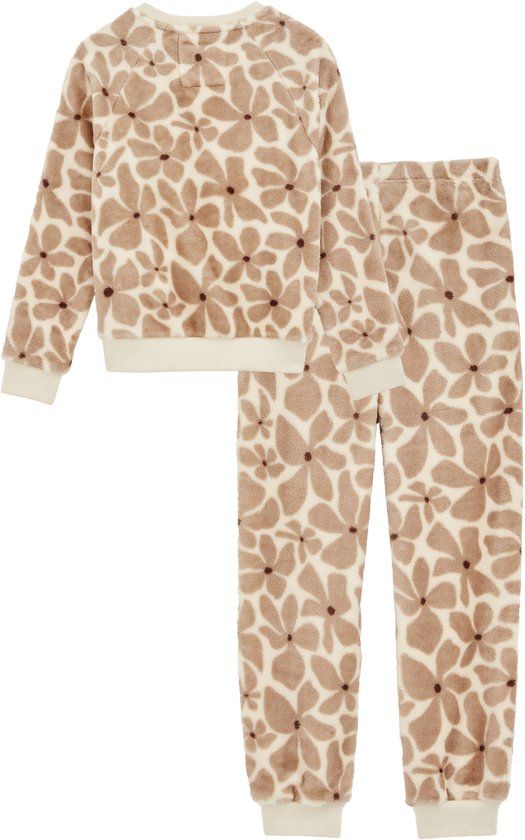 WE Fashion Meisjes fleecepyjama met panterprint - Beige - Maat 122/128