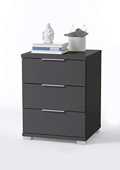 Stella Trading Universeel nachtkastje in grafiet - trendy nachtkastje met drie laden voor uw boxspringbed - 46 x 61 x 42 cm (B x H x D) - Nachtkastjes
