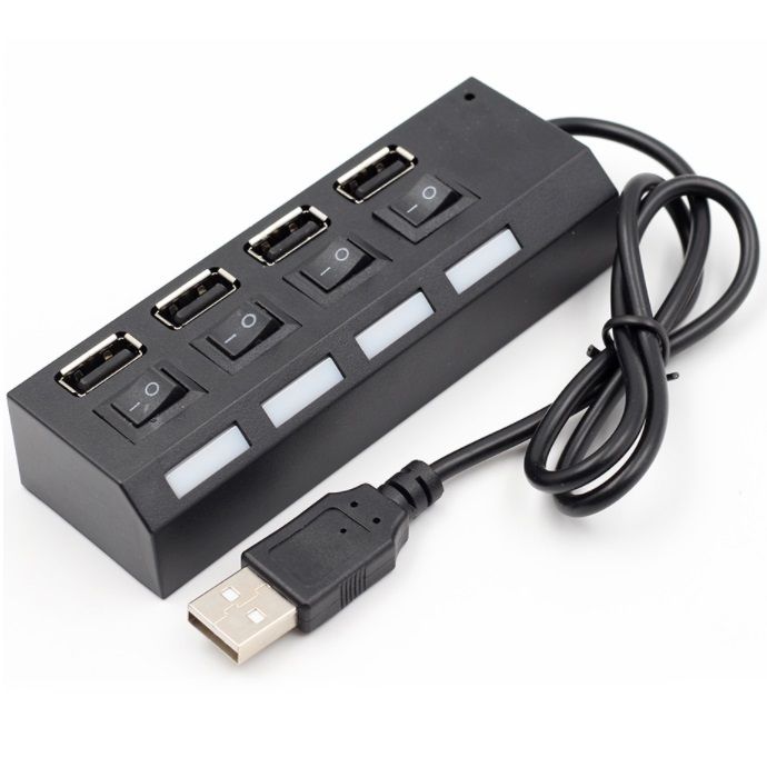 Coretek 4-poorts USB hub met aan/uit schakelaars - USB2.0 / zwart - 0,40 meter - Netwerkbridges