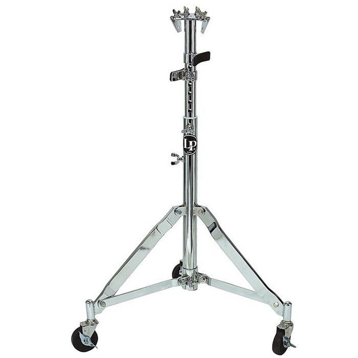 Plaats uw conga's overal op het podium met het LP290B congastatief van Latin Percussion. Het statief is solide dankzij de stevige stalen constructie. U plaatst de conga's eenvoudig in het statief, waarna u de vleugelmoer strak kunt aandraaien. Dit zorgt ervoor dat het statief niet gaat draaien tijdens het spelen. De solide wielen, voorzien van een rem, zorgen ervoor dat het statief stevig op zijn plaats blijft staan wanneer u de conga's intensief gebruikt. U kunt de speelhoek van het instrument instellen door de hoek van de beugels te veranderen. Zo kunt u de conga's naar wens positioneren voor een hoog speelcomfort. Het statief is in hoogte verstelbaar en vast te zetten met een vleugelmoer. Dankzij de verchroomde afwerking past dit statief bij iedere conga. Het statief is te gebruiken met iedere Latin Percussion congaset.